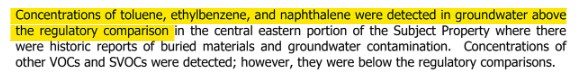 According to the environmental studies (attached below) conducted on the old VDOT site at 1700 N Main Street, there were numerous soil and water samples that contained high amounts of Diesel Range Organics (DROs) as well as other toxic chemicals like arsenic, toluene, ethylbenzene and naphthalene that were found in the samples from the site.