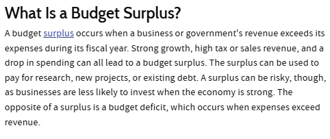 The Mayor doesn’t really like when I talk about the “budget surplus”, so I made sure to double-check the definition. According to Investopedia.com: “a budget surplus occurs when a business or government’s revenue exceeds its expenses during its fiscal year.”