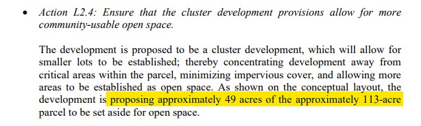 If a developer has 100 acres and could normally build 300 houses on that land, this allows the developer to condense the housing portion and put those 300 houses on 70 acres and then leave 30 acres undeveloped. That all sounds reasonable and when seen in this light, it does seem to provide more open space.